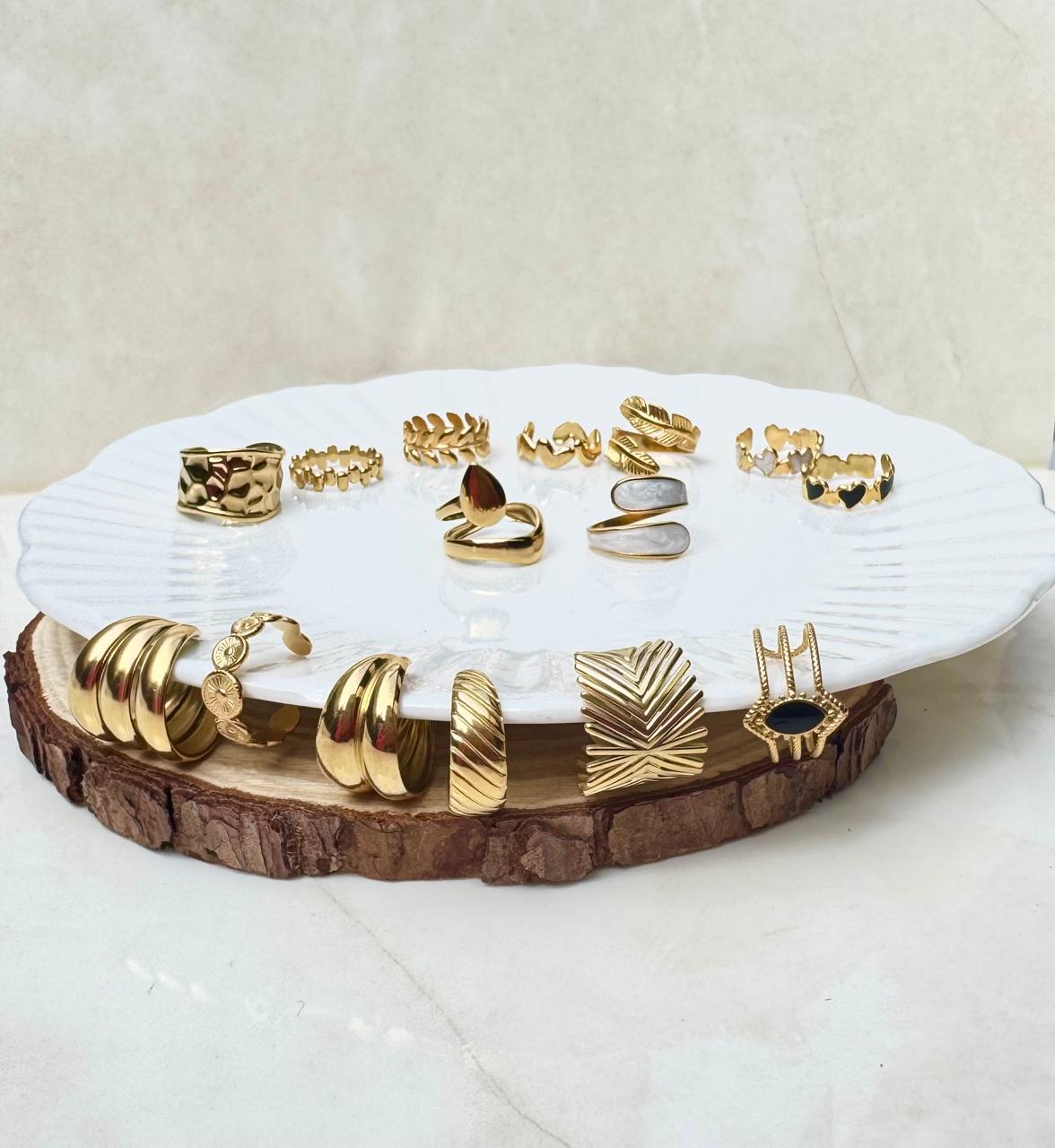 Pack 15 Anillos - Acero enchapado en oro 18k