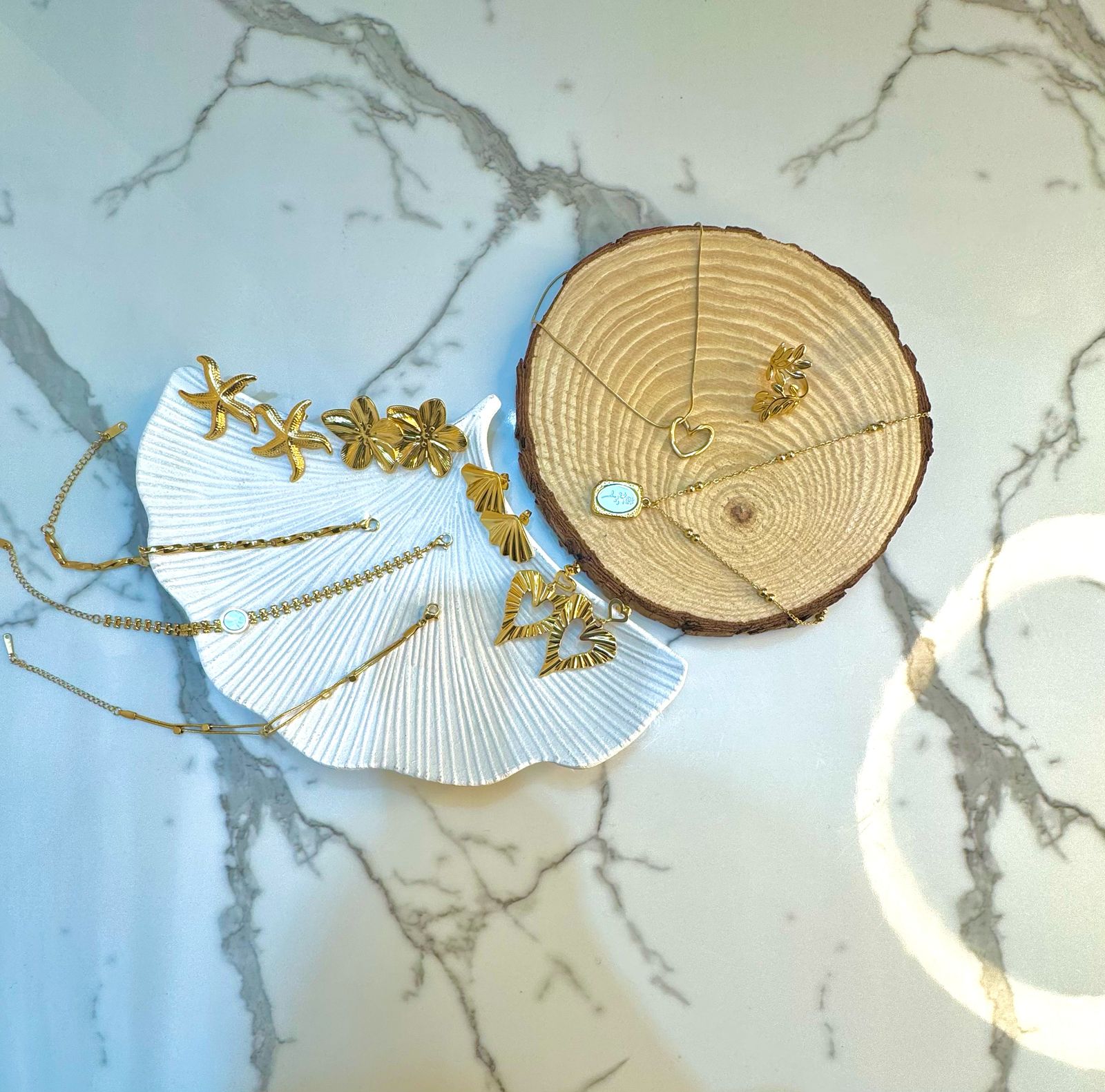 Pack 4 aritos + 3 pulseras + 2 cadenas + 1 anillo - Acero enchapado en Oro 18k