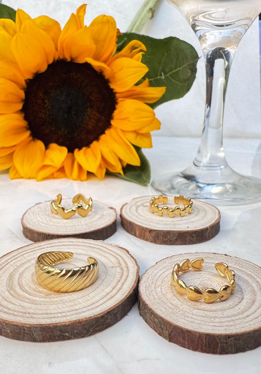 Pack 4 Anillos - Acero enchapado en oro 18k