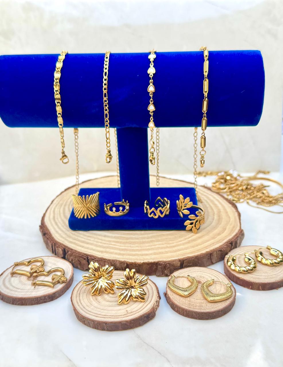 Pack 4 pulseras, 4 aros, 4 anillos - Acero Enchapado en oro 18k